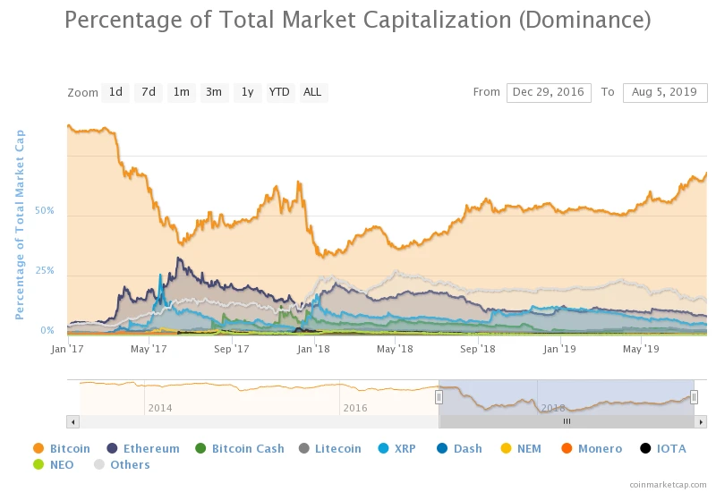 Die meisten großen Altcoins verbuchen zu Wochenbeginn zwar ebenfalls Gewinne, können bei der starken Performance des Bitcoin aber erneut nicht mithalten. Entsprechend hat die Bitcoin-Dominanz – gemessen an prozentualen Anteil an der Marktkapitalisierung des gesamten Kryptomarkts – mit 68 Prozent erneut einen Höchststand seit April 2017 erreicht.