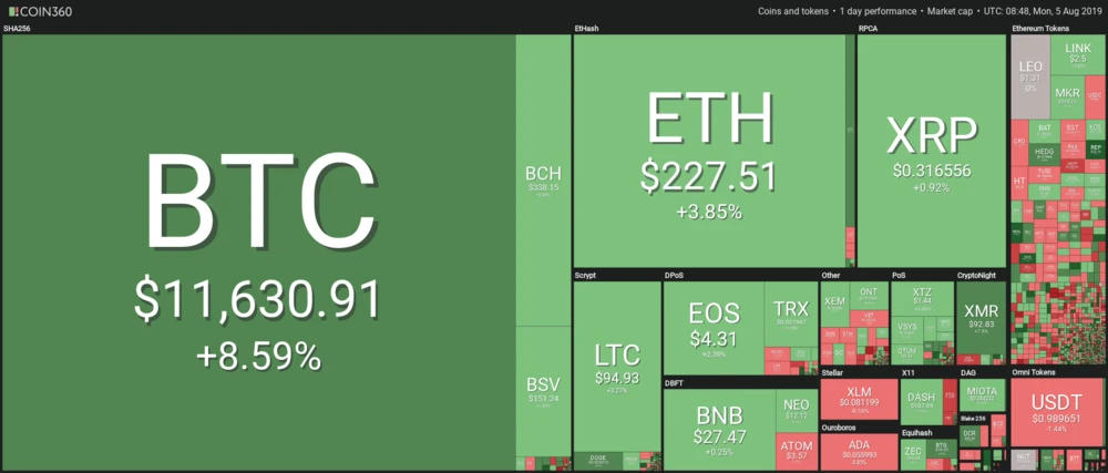 Auf 24-Stunden-Sicht notiert der Kurs aktuell rund zehn Prozent höher. Erstmals seit 21 Tagen wurde dabei wieder die Marke von 11.000 Dollar überwunden. Zudem nähert sich der Bitcoin nun dem Widerstand bei 11.800 Dollar an.