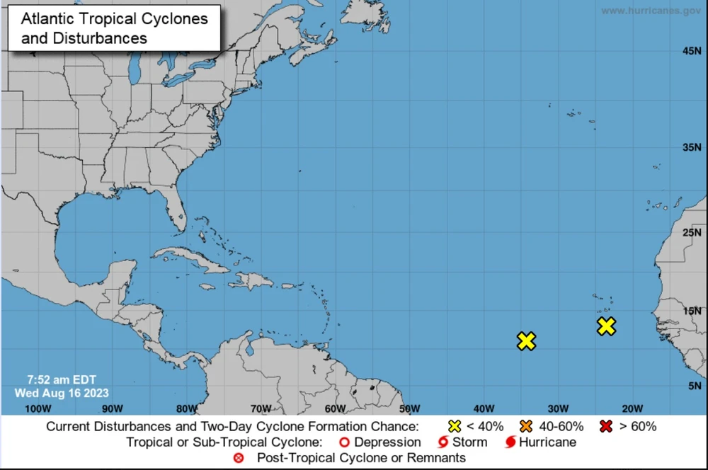Derzeit liegt der Fokus auf zwei Wetterphänomenen, die das Institut überwacht. Bis sich die zu einem Hurrikan entwickeln, dürfte noch etwa ein Monat vergehen. Die tropische Aktivität nimmt normalerweise gegen Ende August und im September zu.