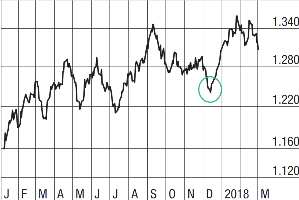 Ist das Zufall? Eine Ausnahme? Nun, wenn man sich die letzten Jahre ansieht, dann hat Gold stets mit Ausnahme von 2018 sein Tief zwischen Thanksgiving und Mitte Dezember eingezogen – und anschließend startete eine neue Rallye. 2018 war es etwas anders: Auch damals startet eine Rallye, doch Gold markierte ein Tief etwa eineinhalb Wochen vor Thanksgiving.