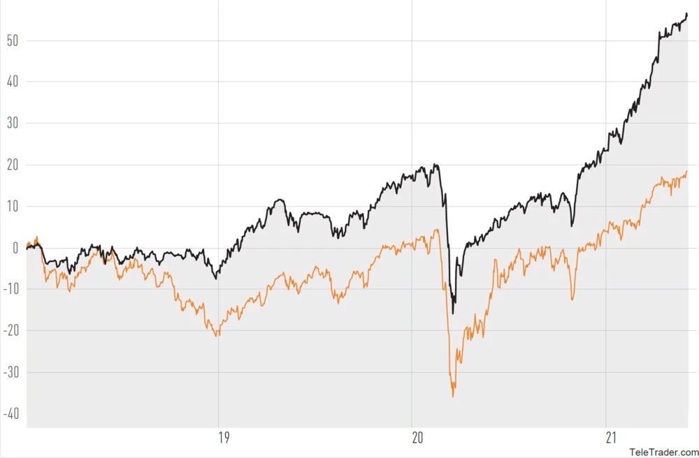 Gold wird dagegen während eines Wirtschaftsaufschwungs vernachlässigt. Eine mit einem Wirtschaftsaufschwung einhergehende steigende Inflationsrate und eine kletternde Anleiherendite lassen das Gold, das keine Zinsen zahlt, unattraktiver erscheinen. Flaut die Wirtschaftsaktivität irgendwann wieder ab, gibt der Kupferpreis nach und Gold wird wegen der rückläufigen Anleiherendite - dem Zins für langfristige Ausleihungen - attraktiver.