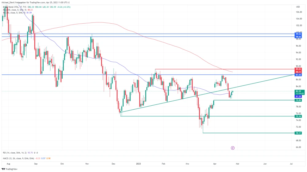 Dafür spricht, dass Brent sowohl am Freitag als auch am Montag negativ in den Tag gestartet war, aber ihn mit einem positiven Vorzeichen beendete. Zudem ließen die Bullen den GD50 bei 81,60 Dollar hinter sich.