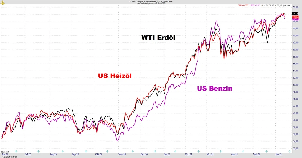Die Preise für amerikanisches Erdöl, Heizöl und Benzin haben bereits einen sagenhaften Anstieg seit Ausbruch der Pandemie hingelegt. Experten rechnen mit einer weiter steigenden Nachfrage aufgrund der nachlassenden Pandemie und der damit verbundenen steigenden Reisetätigkeit der Menschen weltweit. Bei den Aktien könnte Exxon einer der Gewinner sein. Das Unternehmen hat Ende April gute Zahlen bekannt gegeben und scheint für eine weitere Erholung der Wirtschaft gut aufgestellt zu sein.