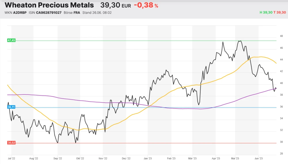 Mit Abstand höchste Gewichtung im DER AKTIONÄR Best of Silberminers hat das kanadische Unternehmen Wheaton Precious Metals. Nach eigenen Angaben sind die Kanadier das weltweit größte Silber-Streaming Unternehmen und generiert Einnahmen zu 60 Prozent aus Silber- und zu 40 Prozent aus dem Goldverkauf. Bei einem KGV von 45 für das Geschäftsjahr 2024 ist die Aktie sehr sportlich bewertet.