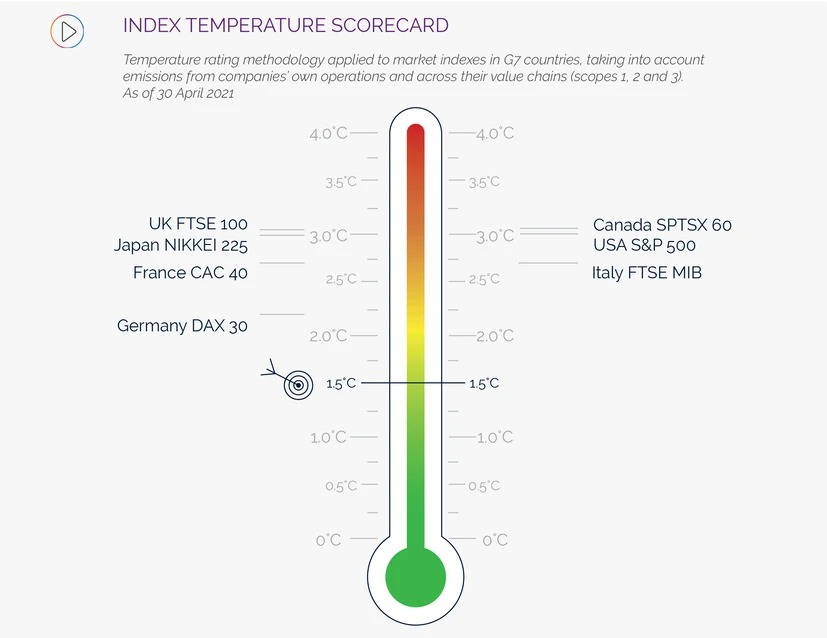 Nur 19 Prozent der in den Indizes vertretenen Unternehmen haben laut dem SBTi Klimaziele, die mit dem Pariser Abkommen übereinstimmen. Ende Mai forderten die Umwelt-Ministerinnen und -Minister der G7 daher Unternehmen und Investoren auf, ihre Portfolios so auszurichten, dass sie den Zielen des Abkommens entsprechen.