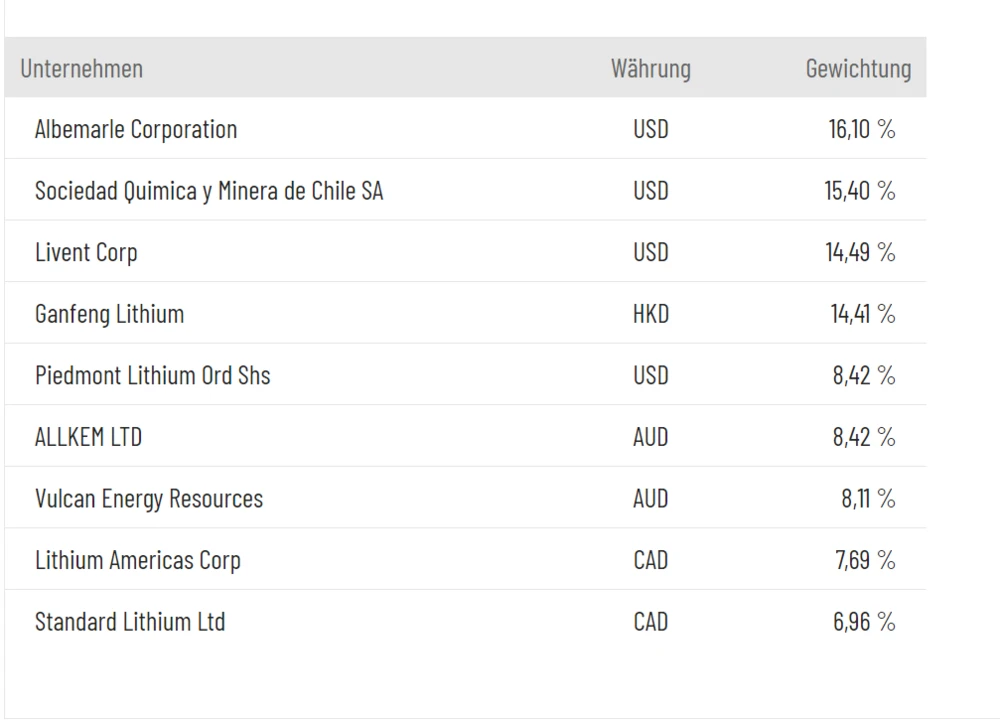 Lithium dürfte weiterhin, vor allem durch den anhaltenden Boom bei E-Fahrzeugen, äußerst begehrt bleiben. Mitunter sind die Schwankungen bei Lithium-Aktien, wie es aktuell der Fall ist, sehr hoch. Anleger, die das Risiko daher auf mehrere Schultern verteilen wollen, setzen am besten auf den Best of Lithium Index. Mit dem Zertifikat, WKN DA0AAS, können Anleger nahezu 1:1 an der Entwicklung des handverlesenen Aktienkorbs, der insgesamt neun aussichtsreiche Lithium-Player vereint, teilhaben.