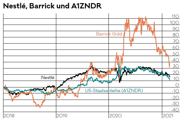 Die Kurse von Nestle, der Goldminenaktie Barrick und einer US-Staatsanleihe