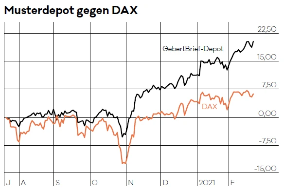 In den letzten sieben Monaten hat das Musterdepot des Gebert-Briefs den DAX mit 14 Prozentpunkten Vorsprung geschlagen.