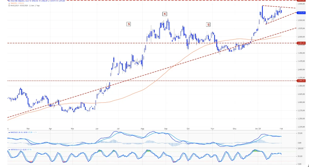 Die aktuell von den Notenbanken ausgehende Geldpolitik sowie globale Krisenherde wie der um sich greifende Corona-Virus haben unmittelbaren Einfluss auf den Goldpreis. "Auch der immer noch ungeklärte Brexit trägt sein Übriges bei. Der Goldpreis hat sich seit August 2018 nochmals deutlich nach oben entwickelt. Der damalige erfolgreiche Test einer wichtigen Supportmarke war dafür die Basis", sagt Charttechnik-Experte Martin Utschneider von Donner & Reuschel.