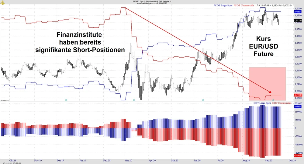Weiteres Ungemach droht durch die historisch große Long-Positionierung der Funds, der Short-US-Dollar-Trade ist aktuell einer der „most crowded“ Trades an der Wall-Street. Die großen Banken hingegen halten dagegen und sind so Short positioniert wie noch nie. Diese außergewöhnliche Konstellation könnte unserer Meinung nach auf eine längere Schwächephase im Euro/Dollar hinweisen.