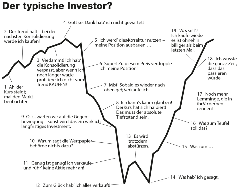 Das Konzept des „Homo oeconomicus“ beschreibt in der klassischen Finanztheorie den idealen Marktteilnehmer, der unter anderem rational agiert, nach größtmöglichem Nutzen strebt und über vollständige Informationen verfügt. In der Realität ist das freilich so gut wie utopisch – und das ist auch gut so. Denn wo niemand Fehler macht und Geld verliert, gibt es für die anderen auch nichts zu gewinnen. Einige typische Anlegerfehler sollten Sie aber trotzdem lieber anderen überlassen.