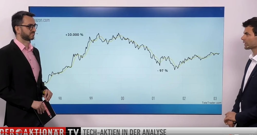 Wie erwähnt, auch wenn es heute nicht danach aussieht: Am Ende werden durch dieses Jahrhundert-Börsen-Gewitter die Märkte bereinigt und gesünder. Es wird dann in Folge Jahrhundertchancen geben. Ein Beispiel aus einem ähnlichen Crash zur Jahrtausendwende: Der damalige Highflyer Amazon war 97 Prozent gefallen. Doch das war erst der Beginn: Nach einer monatelangen Bodenbildungsphase ging es dann in den nächsten Jahren 10.000de Prozent nach oben.