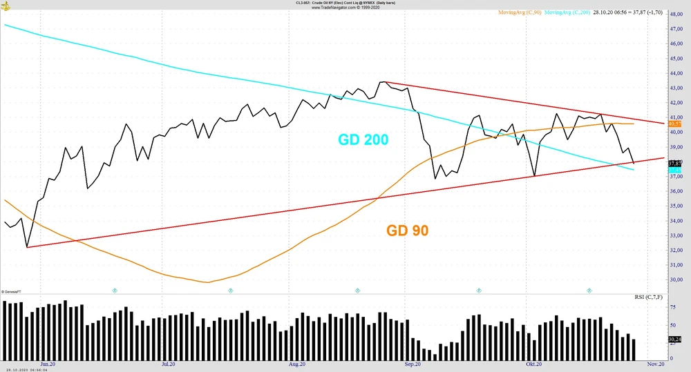 Gestern Abend veröffentlichte das American Petroleum Institute (API) die wöchentlichen Lagerbestände für Crude Oil, die mit 4,57 Millionen Barrel deutlich höher als erwartet ausfielen. Als Reaktion brach der Crude Oil Future im Abendhandel um 2 Prozent ein und gab die Tagesgewinne wieder vollständig ab. Aktuell geht die Talfahrt weiter, die wichtige Unterstützung um 36,70 US-Dollar ist nicht mehr weit entfernt. Weiter anstehende Öl-Lieferungen aus Lybien, eine nach wie vor schwache Nachfrage und ein widererstarkter US-Dollar trüben das Gesamtbild ein. Wir gehen in den nächsten Tagen von einem weiteren „Risk-off“ Szenario und einer ansteigenden Volatilität aus.