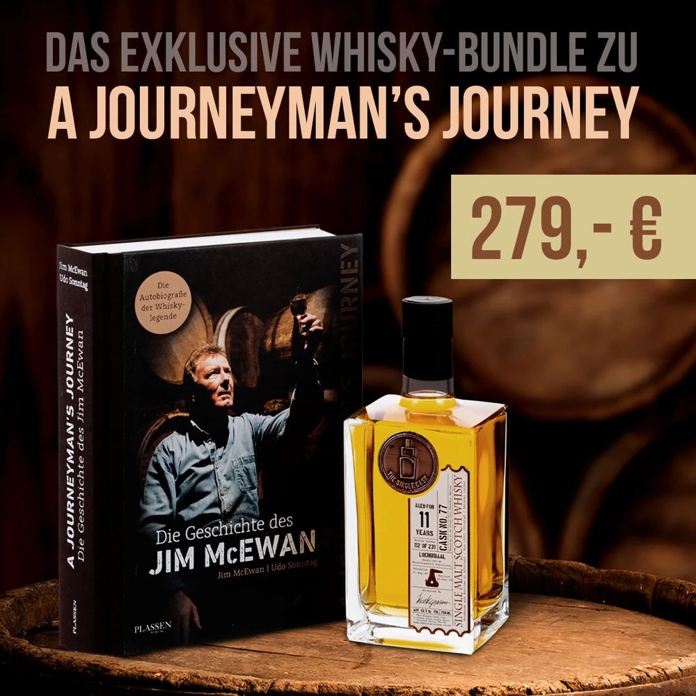 Erleben Sie die Whisky-Insel Islay und die Faszination Whisky jetzt mit dem exklusiven Whisky-Bundle, bestehend aus der Autobiografie „A Journeyman’s Journey“ von Whisky-Papst Jim McEwan und einer echten Whisky-Rarität, dem Lochindaal 11 Years Old 2009 (cask 77), der auf dem Markt so gut wie gar nicht mehr erhältlich ist. Den PLASSEN Buchverlagen ist es gelungen, die letzten rund 100 Flaschen dieser seltenen, mit 50ppm getorften Abfüllung aus Fass 77 für Sie zu sichern. Buch und Whisky gibt es jetzt zum exklusiven Preis von 279 Euro.