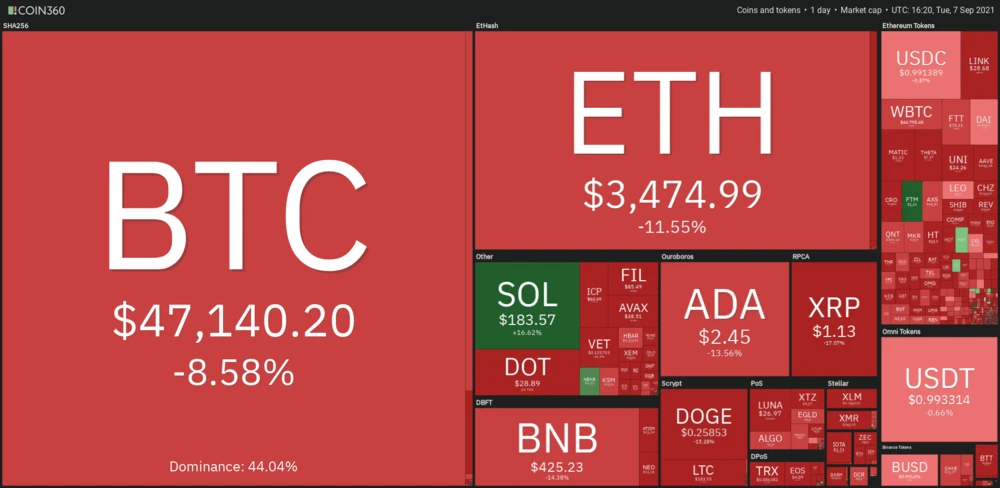 Nachdem der Bitcoin am frühen Dienstagmorgen noch bei 52.854 Dollar den höchsten Stand seit fast vier Monaten markiert hatte, ist er am Nachmittag heftig unter Druck geraten und kurzzeitig bis unter die 44.000-Dollar-Marke gerutscht. Während die digitale Leitwährung nun an der Stabilisierung arbeitet, werden auch am übrigen Kryptomarkt teils noch heftigere Verluste geschrieben.