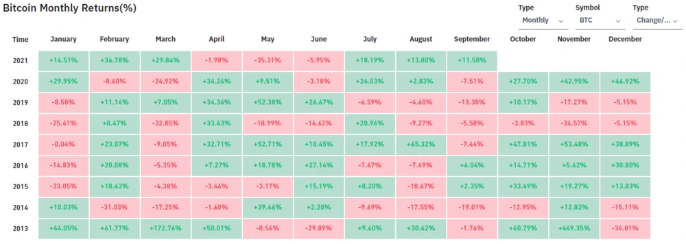 Auch wenn der Bitcoin dafür bekannt ist, sich zyklisch zu bewegen, gibt es keinen Automatismus, dass sich historische Muster wiederholen müssen. Mit Blick auf die maue September-Performance der vergangenen Jahre ist das jedoch eine gute Nachricht.
