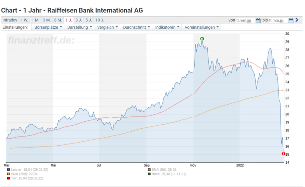 Eine abschließende Einschätzung zu der Lage in den Ländern könne derzeit nicht gegeben werden, da die Sanktionen "fast täglich" ausgeweitet würden, heißt es weiter. Sie seien hart und in ihren Auswirkungen auf die Finanzmärkte und die Realwirtschaft weitreichend. Die Auswirkungen auf die RBI Gruppe werden analysiert. Zum Geschäft in Russland äußerte sich die Bank nicht.