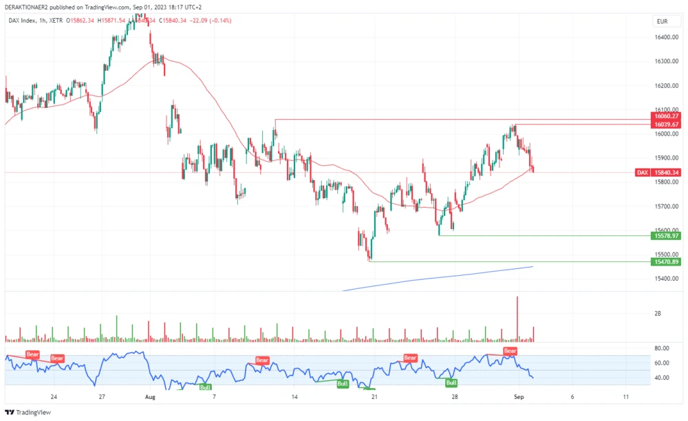 Am ersten Handelstag im September ist es am deutschen Aktienmarkt abwärts gegangen. Nach dem mit Spannung erwarteten Arbeitsmarktbericht aus den Vereinigten Staaten stiegen die Renditen zehnjähriger US-Staatsanleihen kräftig. Der Dax legte im Gegenzug den Rückwärtsgang ein und verlor 0,67 Prozent auf 15 840,34 Punkte.