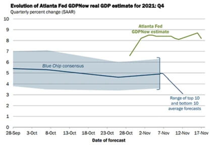 Die Atlanta-Filiale der amerikanischen Notenbank schätzt laufend mit den eintreffenden Wirtschaftsdaten den aktuellen Stand der US-Wirtschaftstätigkeit. Nach einem mageren Wachstum von nur zwei Prozent im zweiten Quartal sieht es nun so aus, dass die US Wirtschaft im vierten Quartal acht Prozent wird zulegen können