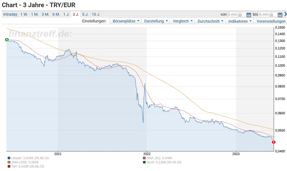 Die Inflation in der Türkei ist im Mai leicht gesunken. Die Jahresteuerung lag nach offiziellen Angaben bei 39,6 Prozent nach 43,7 Prozent im April. Die türkische Währung Lira rutschte derweil weiter ab. Sowohl gegenüber dem US-Dollar als auch zum Euro wurden neue historische Tiefststände markiert. Für Touristen ist die Türkei dennoch nicht billig.