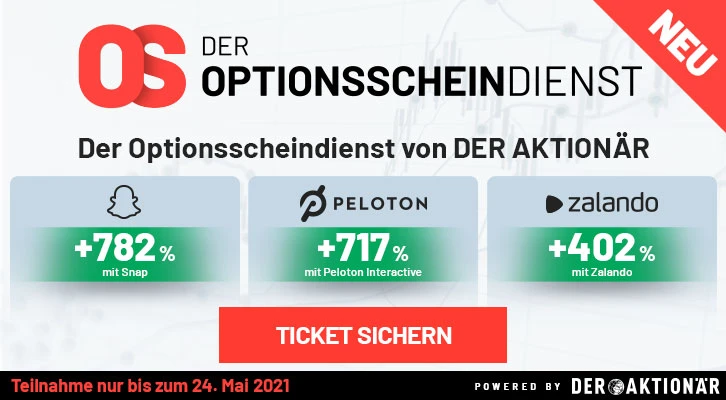 Mit der Hebelwirkung von Optionsscheinen lassen sich überproportional hohe Renditen erzielen. Viele Anleger investieren allerdings dennoch bevorzugt in konventionelle Aktien. Grund hierfür ist meist, dass das nötige Börsen-Know-how fehlt. Eine korrekte Chart- und Fundamentalanalyse sind für satte Gewinne und Erfolge mit Hebelprodukten unabdingbar. Wer sich auskennt, profitiert also – zum Beispiel mit den erstklassigen Empfehlungen von DER AKTIONÄR: Die Empfehlung zum Kauf des Optionsscheines auf Snap Inc. sicherte Anlegern bereits unfassbare 782 Prozent Rendite. Jetzt können auch Sie vom fundierten Know-how und von den nächsten Top-Performern profitieren.