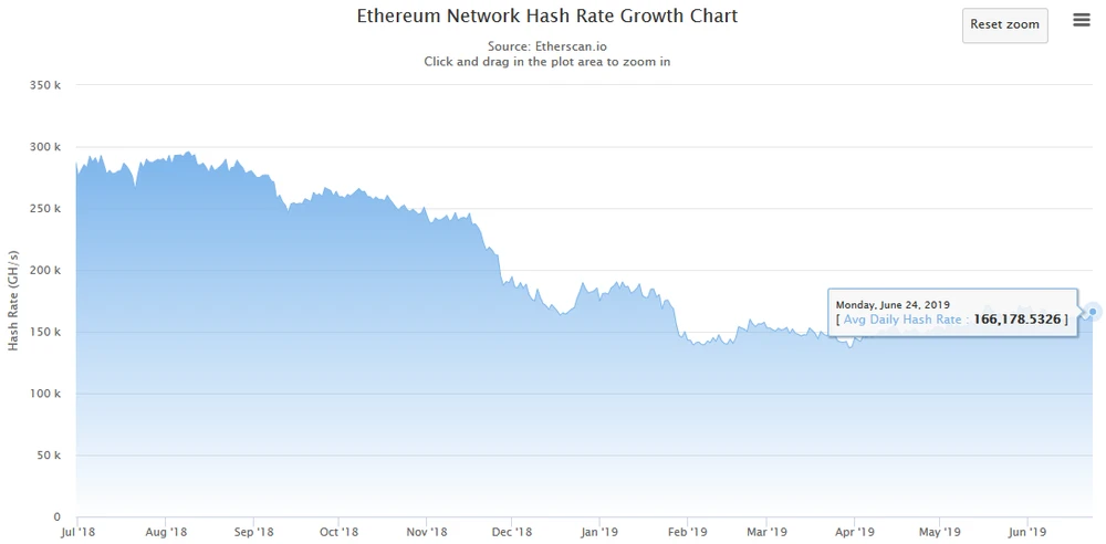 Hierfür spricht auch die nur langsam ansteigende Etherium-Hashrate. Sie gibt einen Überblick darüber, wie viel Rechenpower dem Ethereum-Netzwerk zum Mining bereitgestellt wird.