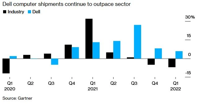 Die Aktie von Dell legt heute im frühen US-Handel rund 13 Prozent zu, nachdem der Computerhersteller am Donnerstagabend besser als erwartete Zahlen und eine starke Prognose für das zweite Quartal veröffentlichte. Besonders für Begeisterung sorgt dabei, dass Dell in einem schwächelnden PC-Markt, der mit zunehmenden Lieferproblemen zu kämpfen hat, seine Konkurrenten outperformte.