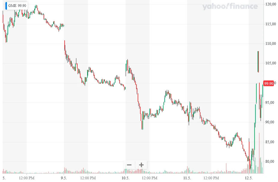 Noch ist unklar, ob es sich bei dem rasanten Kursanstieg, der sich kurzfristig auf bis zu 35 Prozent belief, um das Resultat eines weiteren (koordinierten) Angriffs auf Leerverkäufer handelt. Zuletzt notierte die Aktie nur noch 23 Prozent im Plus auf 99,90 Dollar.