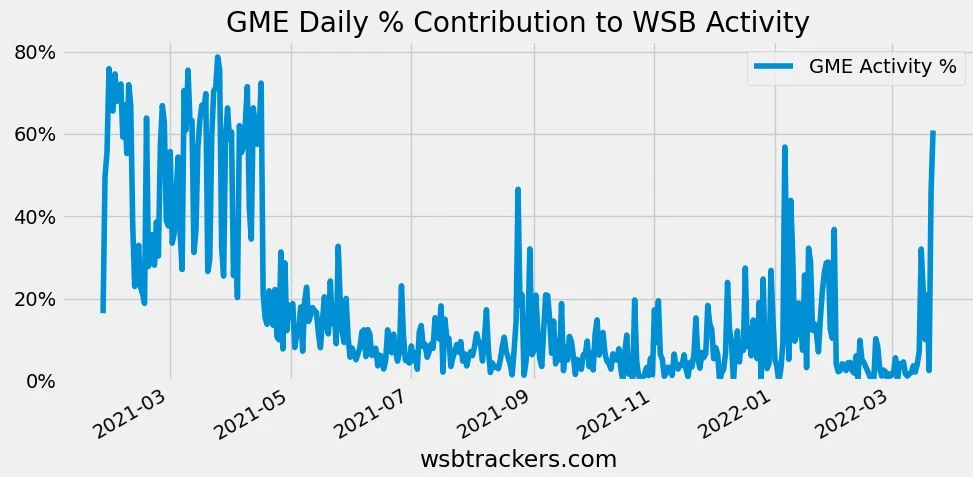 Die Q4-Zahlen und die Cohen-Käufe haben auch wieder dafür gesorgt, dass laut Wallstreetbets-Trackers die Aktivitäten rund um die GameStop-Aktie auf dem Reddit-Forum wieder auf einen Gesamtanteil von rund 60 Prozent anstiegen.