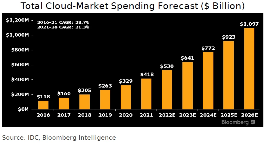 Laut den Daten von IDC soll der Public-Cloud-Markt ausgehend von 418 Milliarden Dollar 2021 bis 2026 mit einem CAGR von 21 Prozent wachsen. Kein Wunder, denn Sparmaßnahmen und Flexibilität sind insbesondere in wirtschaftlich unsicheren Zeiten wichtige Erfolgsfaktoren für Unternehmen.