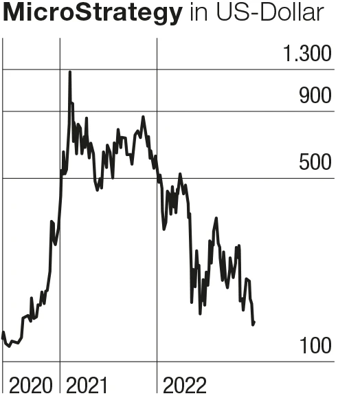 Damit ist MicroStrategy drauf und dran, einen potenziellen Mega-Markt zu erschließen. An der Börse wurde das zuletzt allerdings (noch) nicht honoriert: Die Aktie ist vor dem Jahreswechsel auf den tiefsten Stand seit August 2020 gefallen. Damals hatte das Unternehmen gerade die ersten Bitcoin gekauft – und die Aktie anschließend zeitweise fast 1.000 Prozent zugelegt.
