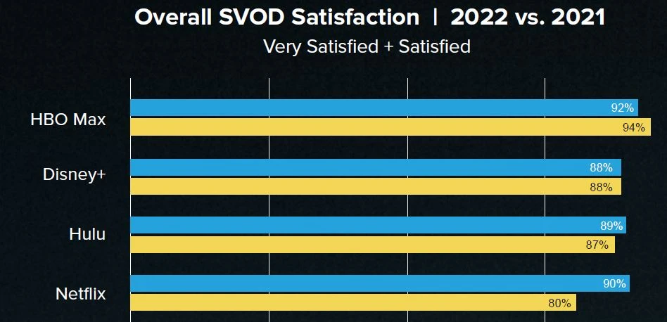 Blickt man auf einen anderen Datensatz, nämlich den Report von Whip Media, wird allerdings ein Grund zur Besorgnis offensichtlich. Denn bei der Kundenzufriedenheit belegt Netflix nur den vierten Platz hinter HBO Max, Disney+ und Hulu. Wesentlich beunruhigender ist jedoch, dass der Streaming-Marktführer als einziger großer US-Anbieter bei den Zufriedenheitswerten eingebüßt hat.