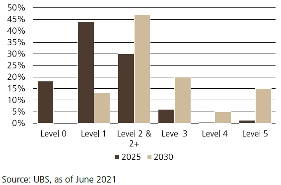 In einer Zukunft in der nicht mehr Pferdestärke, sondern Prozessorleistung zählt, hat sich Nvidia einen klaren First-Mover-Vorteil geschaffen. Im Jahr 2027 könnte sich der US-Konzern daher im Automotive-Bereich durchaus zusätzliche Umsätze um drei Milliarden Dollar jährlich erarbeitet haben. Beeindruckend, bedenkt man, dass laut den Analysten der UBS im Jahr 2030 erst 15 Prozent der Fahrzeuge wirklich mit dem Autonomen Fahren des Levels 5 ausgestattet sein dürften.