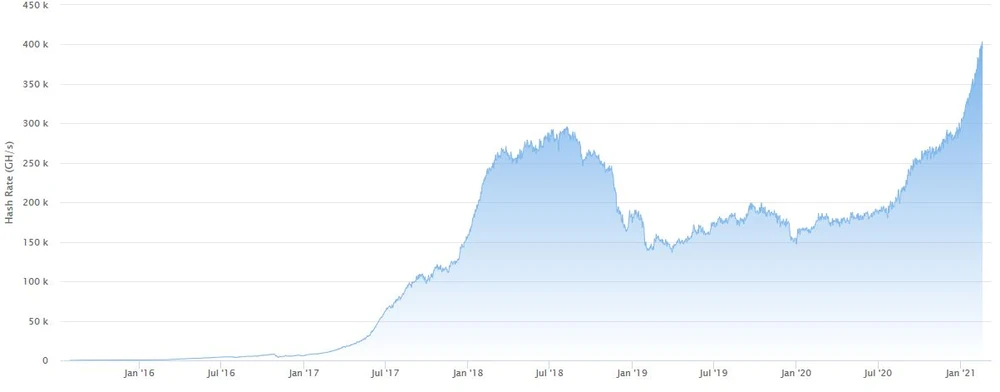 Insbesondere für Ethereum-Mining sind die CMP geeignet und sollen die rasant steigende Nachfrage im Mining-Sektor ab Q1/Q2 befriedigen. Und wie rasant die eingesetzte Rechenpower für das Mining der zweitgrößten Kryptowährung steigt, zeigt der untenstehende Chart.