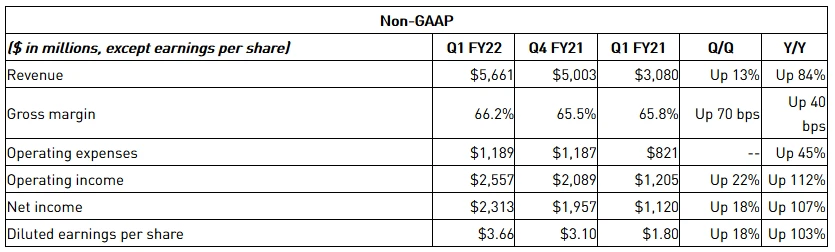 Es war beinahe sicher, dass Nvidia die Erwartungen der Analysten an das erste Quartal am Mittwochabend übertreffen würde. Die spannende Frage war eher, wie deutlich. Beim Gewinn je Aktie lag Nvidia 0,33 Dollar über den Schätzungen. Angesichts eines Gewinns je Aktie von 3,66 Dollar ist das ordentlich – aber auch deutlich weniger stark als die 0,99 Dollar oder 1,12 Dollar, die Nvidia im dritten beziehungsweise im vierten Quartal über dem Analystenkonsens lag.