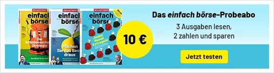 Informationen rund um die moderne Geldanlage mit einfach börse im Probeabo: 3 Ausgaben, Print oder E-Paper, für 10 Euro statt regulär 15 Euro.