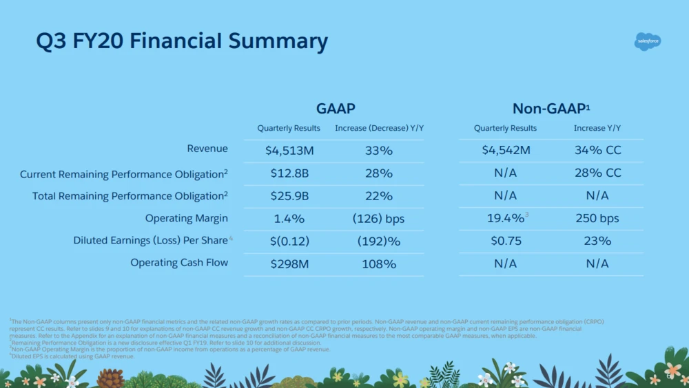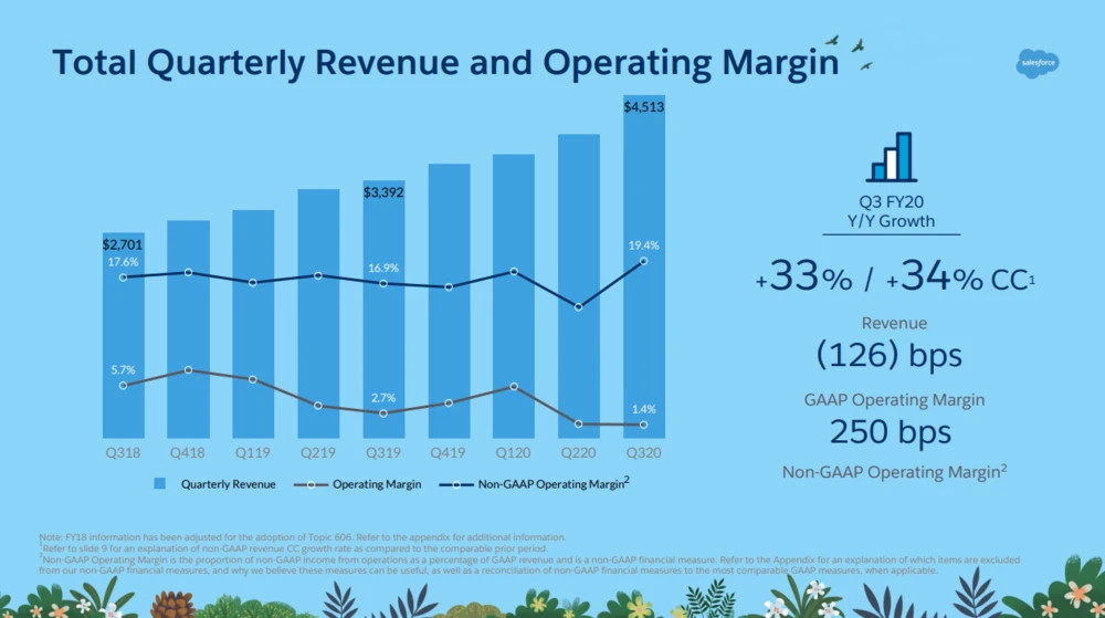 Im dritten Quartal des Fiskaljahres 2020 hat der CRM-Spezialist seinen Umsatz im Vergleich zum Vorjahr um 33 Prozent auf 4,5 Milliarden Dollar gesteigert. Unterm Strich blieb ein Gewinn von 75 Cent je Aktie hängen.