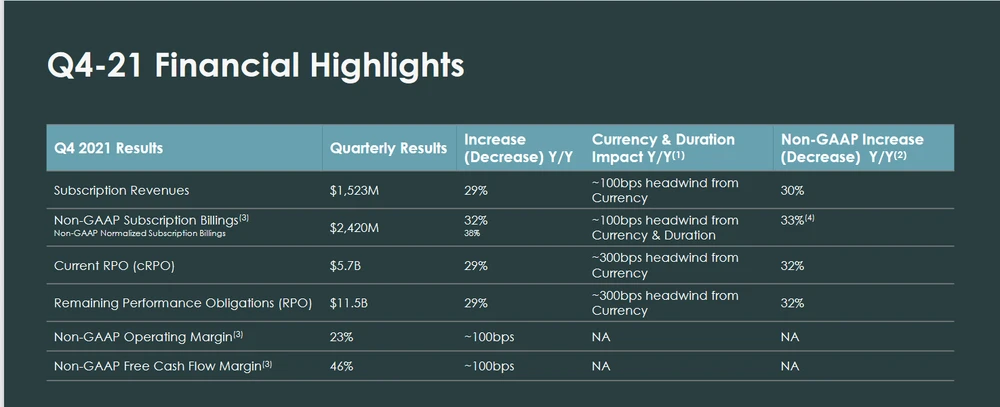 Das Unternehmen meldete im Q4 einen Gewinn pro Aktie von 1,46 Dollar (erwartet: 1,43 Dollar) und eine Steigerung der Erlöse um 31 Prozent auf 1,61 Milliarden Dollar (erwartet: 1,60 Milliarden Dollar). Die Zahl der Deals mit einem Auftragsvolumen von über einer Million Dollar belief sich auf 1.359, was einer Steigerung von 52 Prozent gegenüber dem Vorjahr entspricht. Auch hier rechneten die Wall-Street-Experten mit weniger Aufträgen (1.316).