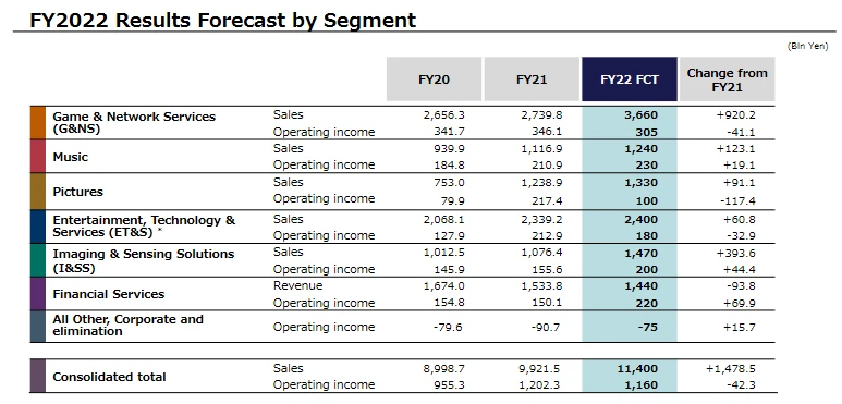 Die Spielesparte blieb denoch der größte Geschäftsbereich von Sony mit Erlösen von 2,74 Billionen Yen – das Wachstum lag aber nur bei gut drei Prozent. Im laufenden Geschäftsjahr hofft Sony zudem, den Umsatz des Bereichs um ein Drittel steigern zu können, auch weil das Produktionsvolumen für die PlayStation 5 erhöht werde. Laut Management sei die unerfüllte Nachfrage hoch genug, um die im November 2020 erschienene Konsole noch immer zu einem Verkaufserfolg zu machen.