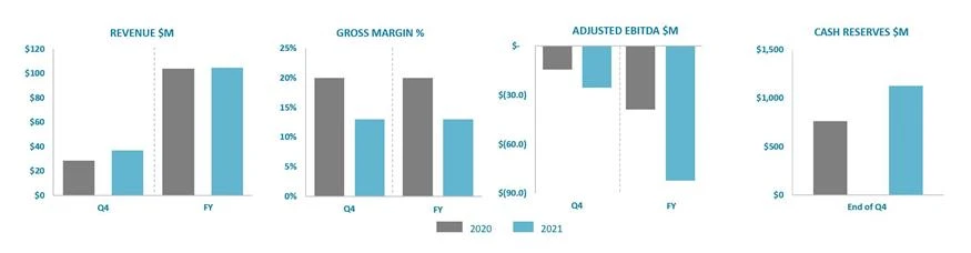 Enttäuschend war der Gesamtumsatz von 104 Millionen Dollar im Geschäftsjahr 2021. Damit erwirtschaftete der Brennstoffzellenhersteller nur minimal mehr als in 2020. Hinzu kommt ein Verlust, der mit 114 Millionen Dollar rund 130 Prozent höher ausfällt als in 2020.