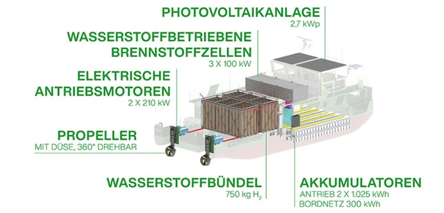 Ballard Power hat dafür den Auftrag für die Lieferung von drei Brennstoffzellen-Modulen des Typs FCveloCity mit einer Leistung von je 100 Kilowatt erhalten. Diese sind ein wichtiger Bestandteil des Energie-Systems von ELEKTRA (siehe Illustration). Die Auslieferung ist für das Jahr 2020 vorgesehen.