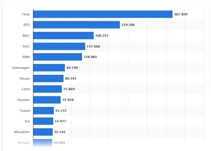 BYD liegt gut im Rennen. Der schnelle Ausbau der Produktionskapazitäten für das Modell Han passt ins Bild.