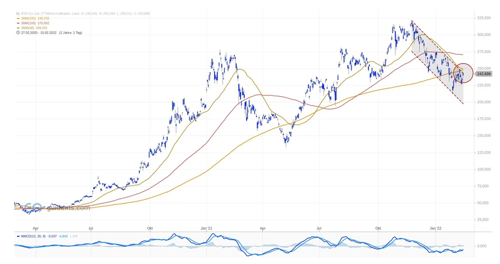 BYD verteidigte im vierten Quartal mit 93.000 verkauften Einheiten (48.000 BEVs und 45.000 PHEVs) alleine im Monat Dezember seinen Marktanteil in China von rund 20 Prozent. Im Vorfeld hatten viele Analysten noch bedenken, ob BYD seine starke Position würde halten können. Technisch sieht das Papier extrem spannend aus.