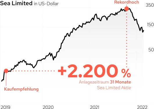 Das Aufholpotenzial ist gewaltig. Die Chancen sind es ebenfalls, wie das Beispiel Sea Limited beweist, dessen Wert sich von 2019 bis 2021 in der Spitze vervierzigfachte.