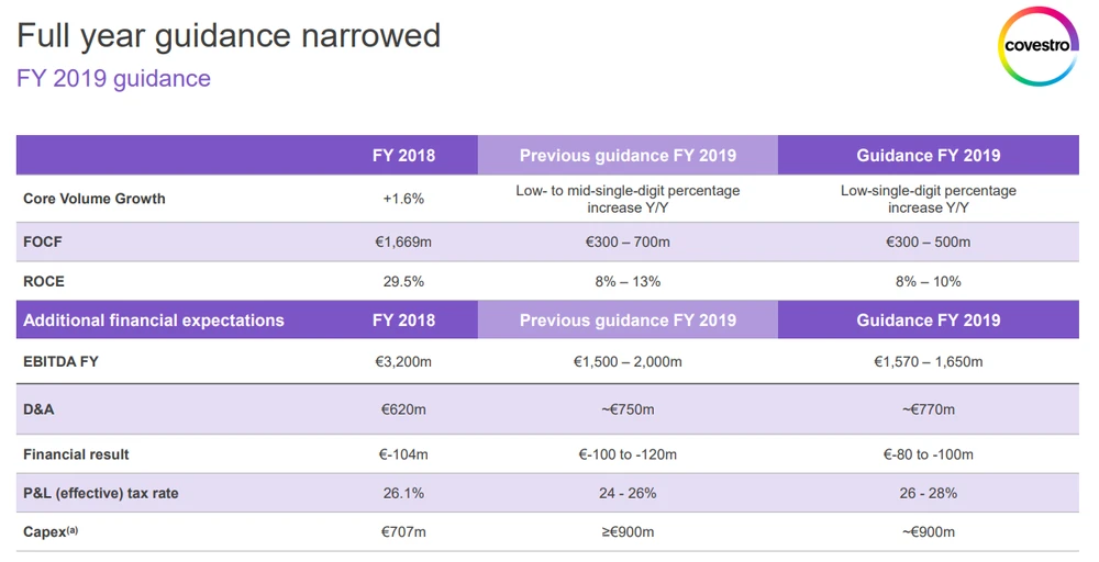 Das Ergebnis vor Zinsen, Steuern und Abschreibungen (EBITDA) brach um die Hälfte auf 425 Millionen Euro ein (Prognose: 415 Millionen Euro). Mit dem operativen Gewinn übertraf Covestro allerding den eigenen Ausblick.