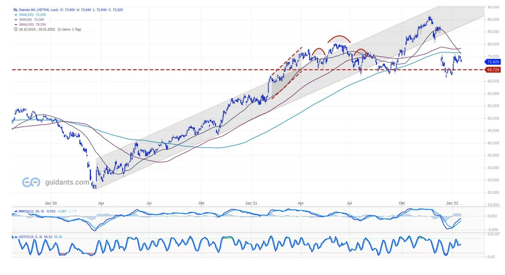 Nach der Vorstellung des EQXX auf der CES hat die Elektrostrategie von Daimler weiter an Konturen gewonnen. Charttechnisch muss der Support bei 67,27 Euro halten. Anleger bleiben investiert.