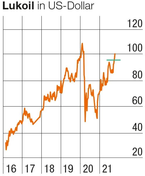 Es waren zweifellos schwierige Jahre für Anteilseigner von Ölfirmen. Denn der Einbruch der Ölpreise zwischen 2014 und 2016 oder natürlich der Corona-Crash machten den meisten Aktienkursen schwer zu schaffen. Gerade vor diesem Hintergrund ist es wirklich erstaunlich, wie stark sich die Lukoil-Aktie in den vergangenen Jahren entwickelt hat. Seit Anfang 2017 konnte sich der Kurs des russischen Öl-Riesen mehr als verdoppeln – während die meisten westlichen Energietitel trotz der jüngsten Rallye immer noch unter oder auf den Niveaus des Jahres 2017 notieren.