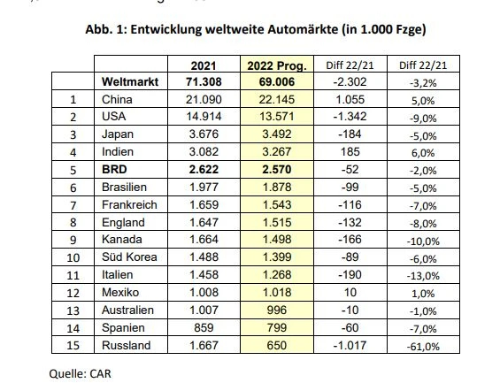 Gute News also für die deutschen Automobilhersteller. Denn China ist und bleibt der wichtigste Automarkt der Welt. 2023 erwartet das CAR-Institut rund 23 Millionen neu verkaufte Autos in China. Zum Vergleich: in den USA werden im neuen Jahr Schätzungen zu Folge rund 13 Millionen neue Autos abgesetzt.