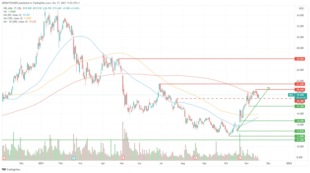 Im Wasserstoff-Sektor ist die Stimmung zur Wochenmitte freundlich. Mit einem Aufschlag von fast drei Prozent präsentiert sich die Nel-Aktie stark und die Bullen setzen zur nächsten Kaufwelle an. Hält das positive Momentum, kann es zu einer Kettenreaktion und einer starken Aufwärtsbewegung kommen. Damit Anleger diese nicht verpassen, sollen Sie diese Marken auf dem Schirm haben.