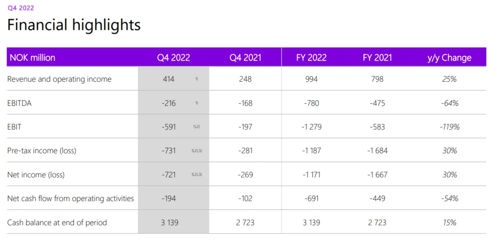 Die Erlöse stiegen im vierten Quartal um 67 Prozent auf 414 Millionen Norwegische Kronen (37,7 Millionen Euro), die Schätzung lag bei knapp 231 Millionen Kronen. Der EBITDA-Verlust belief sich im Schlussviertel auf 216 Millionen Kronen, womit Nel die Prognose von 202 Millionen Kronen verfehlte.